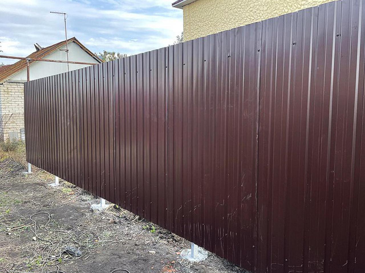 Рассмотрите, пожалуйста, готовый вариант забора из профлиста с калиткой под ключ в Старой Купавне. Ниже в таблице представлены характеристики, комплектация и цена.